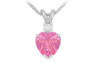 A heart-shaped natural pink topaz is securely held in a luscious 14K white gold prong setting. Set atop a brilliant-cut diamond adds a touch of style. This gemstone pendant has a total weight (TGW) of 1.00 and comes with a standard 16 14K white gold chain. Available in yellow gold also.