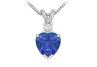 A heart-shaped natural sapphire is securely held in a luscious 14K white gold prong setting. Set atop a brilliant-cut diamond adds a touch of style. This gemstone pendant has a total weight (TGW) of 1.00 and comes with a standard 16 14K white gold chain. Available in yellow gold also.