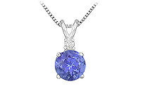 • Diamond and Tanzanite Solitaire Pendant : 14K White Gold - 1.00 CT TGW