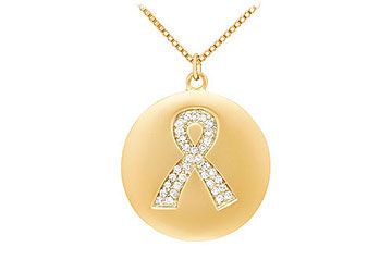 Diamond Breast Cancer Awareness Ribbon Disc Pendant 14K Yellow Gold - 0.15 CT Diamonds |