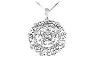 A vintage inspired floral theme is made in this circle pendant. Brilliant-cut round diamonds add sparkle to the pendant. Made in 14K white gold it has a total diamond pendant (TDW) of 0.66 ct.
