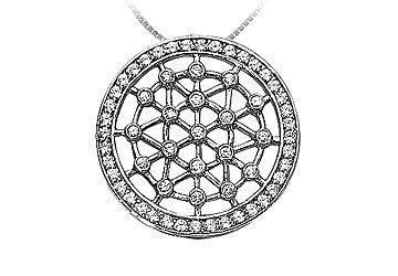 Nineteen brilliant-cut diamonds are prong-set in an eye-catching floral motif inside the circle. Prong-set diamonds make a fine circular border. Made in 14K white gold this pendant has a total weight (TDW) of 0.75 ct.