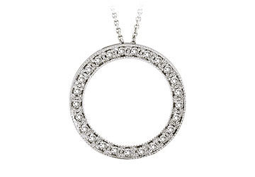 Brilliant-cut round diamonds are set all around a circle which is made in 14K white gold. This pendant has a total weight (TDW) of 1.00 ct. and comes with a standard 14K gold chain.