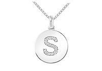 Beautifully made in polished 14K white gold disc pendant is inscribed with the letter "S". This alphabet is embellished with brilliant-cut round diamonds with a total gem weight (TDW) of 0.15 carat. This initial pendant dangling from standard 16 inches gold chain. Wear your identity symbol.