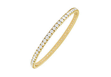 A fashionable circle eternity bangle surrounded with sparkling brilliant-cut round diamonds are beautifully 4-prong-set. Made in 14K Yellow Gold has a total weight (TDW) of 3.00 carat diamonds. This gorgeous eternity bangle is made in USA and we can make this bangle exactly as per your wrist. Call us for free bangle sizer.