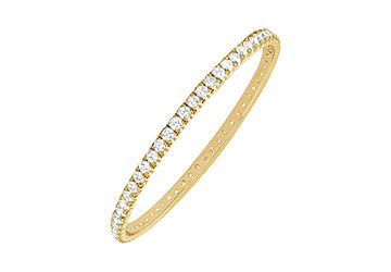 A fashionable circle eternity bangle surrounded with sparkling brilliant-cut round diamonds are beautifully 4-prong-set. Made in 14K Yellow Gold has a total weight (TDW) of 5.00 carat diamonds. This gorgeous eternity bangle is made in USA and we can make this bangle exactly as per your wrist. Call us for free bangle sizer.
