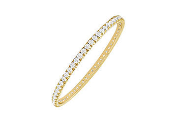 A fashionable circle eternity bangle surrounded with sparkling brilliant-cut round diamonds are beautifully 4-prong-set. Made in 18K yellow gold has a total weight (TDW) of 2.00 carat diamonds. This gorgeous eternity bangle is made in USA and we can make this bangle exactly as per your wrist. Call us for free bangle sizer.