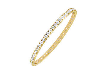 A fashionable circle eternity bangle surrounded with sparkling brilliant-cut round diamonds are beautifully 4-prong-set. Made in 18K yellow gold has a total weight (TDW) of 5.00 carat diamonds. This gorgeous eternity bangle is made in USA and we can make this bangle exactly as per your wrist. Call us for free bangle sizer.