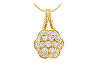 Seven bezel-set round diamonds make a sassy flower. This flower is surrounded by prong-set brilliant diamonds. Made in 14K yellow gold this pendant has a total weight (TDW) of 0.50 ct.