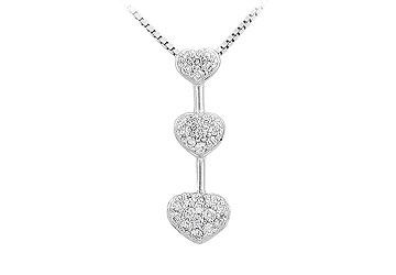 Three graduating hearts are set inline with sleek gold bars in between. Each heart motif is accented with multiple prong-set brilliant-cut diamonds. Made in 14K white gold this pendant has a total weight (TDW) of 0.25 ct.