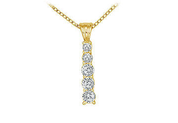 Suspending from a 16 gold chain five prong-set diamonds make a stylish journey pendant. These brilliant-cut graduating diamonds reflect all those progressing steps in your life. This journey pendant is made in 14K yellow gold has a total weight (TDW) of 0.50 ct.