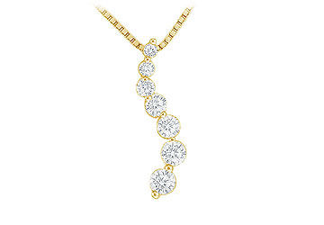 Prong-set in a delicate curve seven graduating diamonds celebrate your personal growth over time. These brilliant-cut diamonds are mounted in 14K yellow gold. This diamond journey pendant has a total weight (TDW) of 0.50 ct.