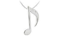 Diamond Music Note Pendant : 14K White Gold - 0.02 CT Diamonds |