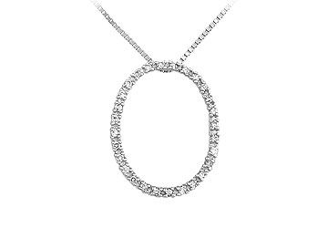 Diamond Oval Pendant : 14K White Gold - 0.20 CT Diamonds |