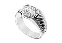 A clusters of brilliant-cut smaller diamonds are delightfully in pave-setting. Sassy rope design set between 14K polished white gold. This ring has a total diamond weight (TDW) of 0.50 carat.