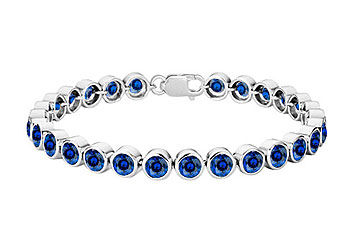 This charming tennis bracelet surrounded on your wrist with round bezel-set diffuse sapphire. The entire bracelet is made of .925 sterling silver with high shine rhodium plated. It has a total gem weight (TGW) of 25.00 carats.