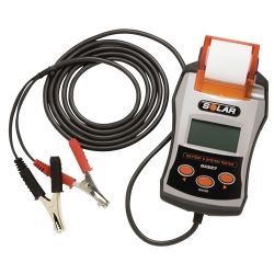 The new Digital Battery and System Tester with Integrated Printer, offers a complete testing solution for 6 and 12 Volt batteries and 6, 12 and 24 Volt charging systems. Compatible with a wide variety of battery types, it features easy, intuitive operation with quick, accurate assessment of battery condition and starting and charging system performance. Testing is quick and easy and allows the operator to perform either a battery test, system test or both from the home screen. The tester walks through the test sequence, prompting for key pieces of information and guiding the operator from one step to the next. The tester provides accurate assessment of both charged and discharged batteries and features temperature compensation for improved accuracy. The tester’s integrated printer provides easy service documentation. The printing sequence is clear and quick, with a completed printout in just seconds. In addition, the printing stage can be easily bypassed if a printout is not necessary. The tester also incorporates a number of features that improve convenience during testing, including reverse polarity protection, extra-long cable leads reaching 10’, a fully adjustable, brightly backlit screen for clear viewing in bright or low light environments and a convenient case for safe, secure storage.