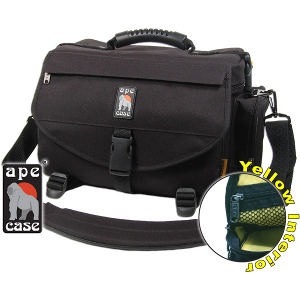 APE CASE MEDIUM DIG/SLR CAMERACASE-INNER DIMENSION SLR CAMERA CASE Designed to hold SLR, digital, 35MM, camcorders and a wide variety of accessories 15 pockets and compartments including tripod strapsHeavily padded and pockets secure closed with zippers Hard bottom with rubber feet Yellow interior makes it easy to find accessories Lifetime warranty Interior: 11 5/8" W x 7" H x 6 3/8" DExterior: 14 1/8" W x 8 5/8" H x 8 7/8" DACPRO1400 interior: 12" W x 9" H x 6" DIncludes deluxe-comfort shoulder strap BRAND : APE CASE