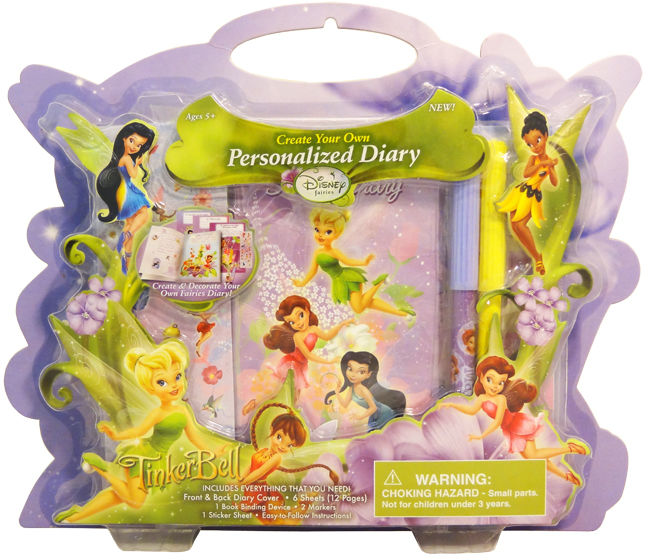 Disney Tinkerbell Create Your Own Personalized Diary. The Disney Fairies Tinkerbell Create Your Own Personalized Diary includes a front and back diary cover, six sheets, a book binding device, two markers, a sticker sheet and easy-to-follow instructions. Create and decorate your own Fairies diary. Includes a front and back diary cover, 6 sheets, a book binding device, 2 markers, a sticker sheet and easy-to-follow instructions. Case pack: 4." Case Pack 4 Please note: If there is a color/size/type option, the option closest to the image will be shipped (Or you may receive a random color/size/type). BRAND : DDI PRODUCT_CODE : 765940214183 PRODUCT_CODE_TYPE : UPC