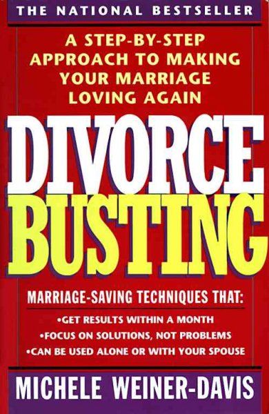 Book annotation not available for this title. Title: Divorce Busting Author: Weiner-Davis, Michele Publisher: Simon & Schuster Publication Date: 1993/02/01 Number of Pages: Binding Type: PAPERBACK Library of Congress: BL 99756642 Additional Details \N BOOK TYPE : NF DEWEY CLASSIFICATION : 646.7/8 LANGUAGE : ENGLISH PUBLISH DATE : 1993/02/01 PUBLISHER IMPRINT CODE : SMNPB PUBLISHER NAME : SIMON & SCHUSTER RETURNS ACCEPTED? : YES SKU : 9780671797256 UPC : 9780671797256