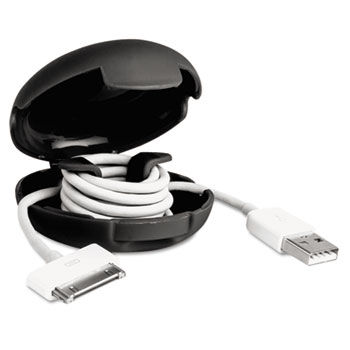 Keep excess computer, phone and other cords neat and safe. Simply wrap cord around spindle. Mini cord case has a detachable clip. Soft-touch finish. Cord not included. Color(s): Black; Length: 4-1/2"-Wrap up to 8 ft.; Width: 4 1/2"; Depth: 1 1/4".