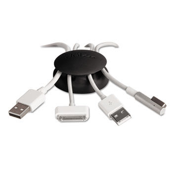 Keep charging cords from dropping behind desk or workstation. Holds up to four cords in two channel sizes. Weighted, non-stick silicone base grips to surface without leaving residue. Rubberized, soft-touch finish. Color(s): Black; Width: 4 1/3"; Depth: 1"; Height: 4 1/2".