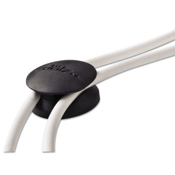 Route up to two cords along walls or up, over or under desk. Permanent adhesive sticks to smooth, flat, hard surfaces. Rubberized, soft-touch finish. Four per pack. Color(s): Black; Width: 4 1/4"; Depth: 3/5"; Height: 5 9/10".