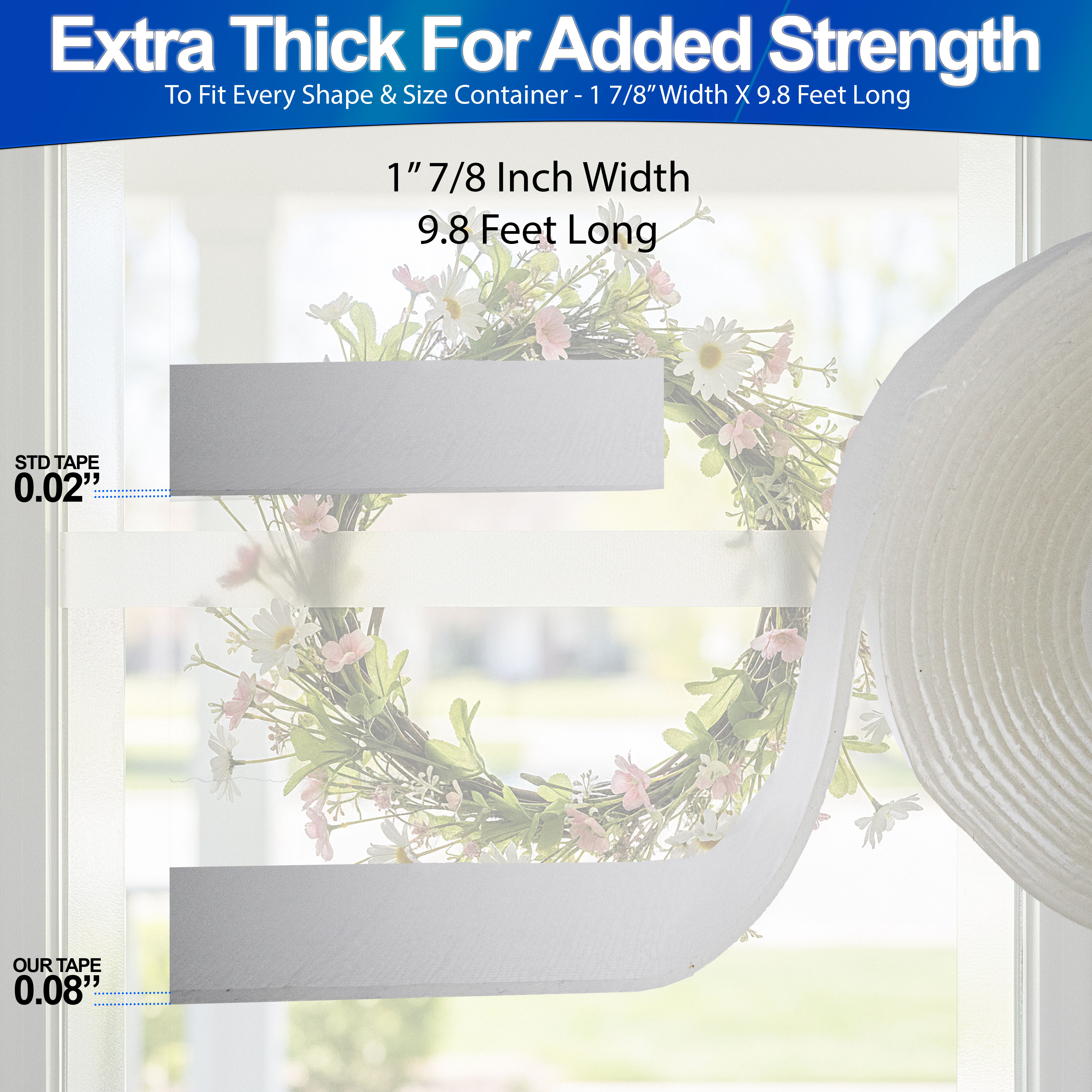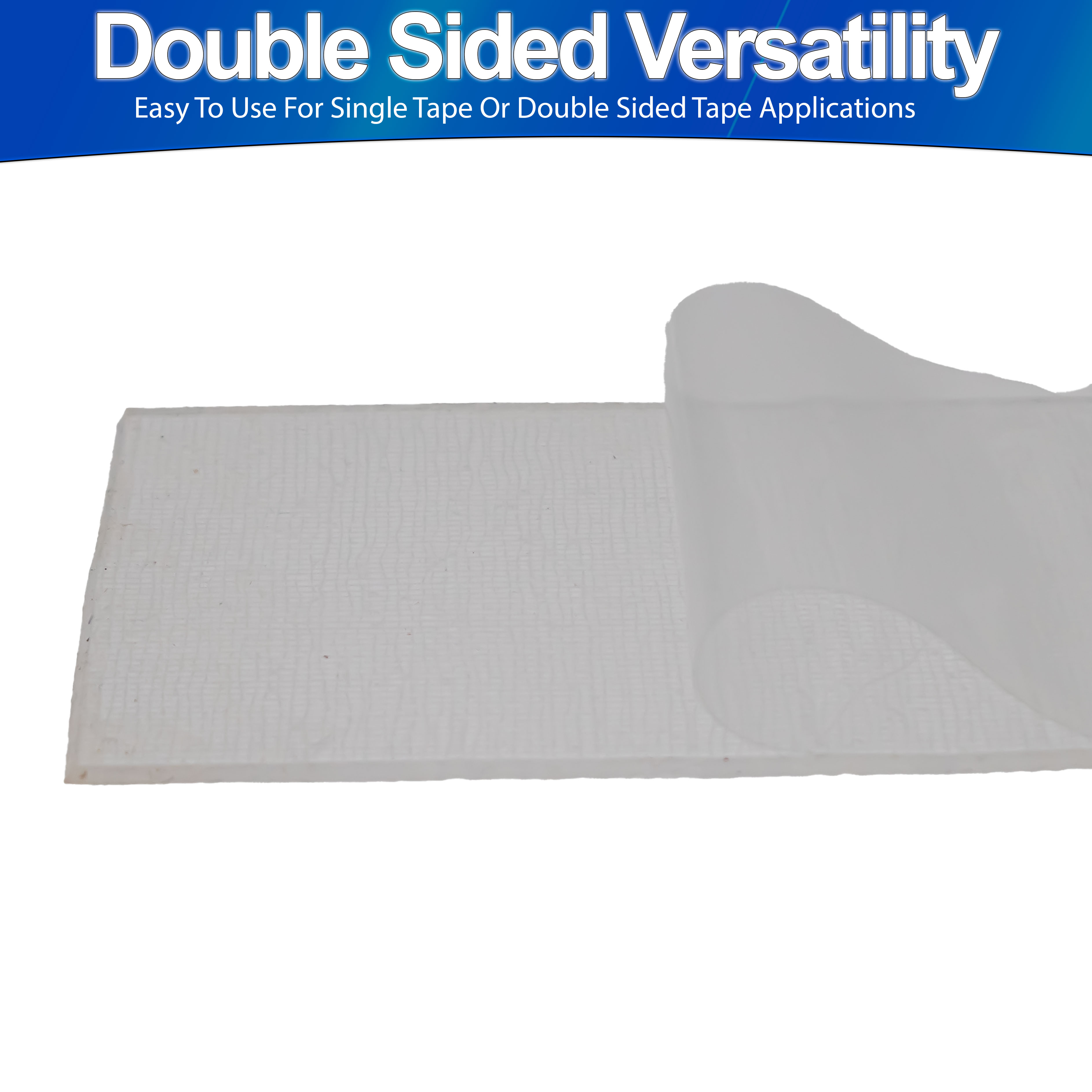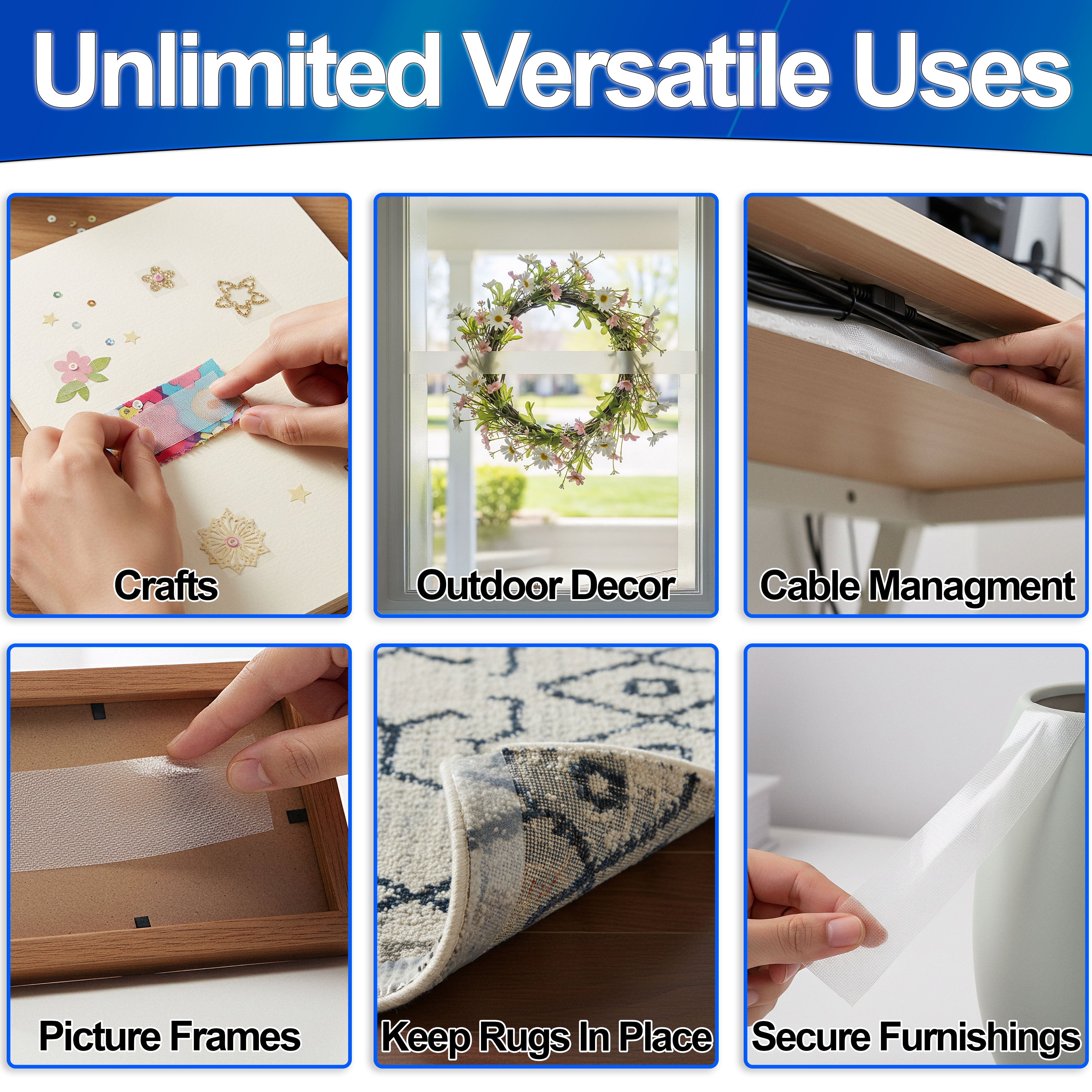 Look closely and you’ll see a woven mesh inside a thicker gel layer (about 0.08" or ~2 mm in marketed art). That mesh makes the tape tear‑resistant and helps peel cleanly instead of shredding. The extra‑thick profile fills gaps and grips uneven edges, which helps hold oddly shaped items and rugs more securely. The clear, low‑profile finish keeps mounts discreet. Cut it to custom lengths with scissors so you can tailor strips precisely to frames, containers or craft projects.