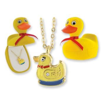 Duck Animal Necklace in Duck Box Its a Jungle Out There...Be a Part of it Unique and Fun Animal Pendants in the Most Adorable Velour Boxes Comes with Sterling Silver or 18 kt Gold Finish Make Sure You Check Out the Other 25 Animal Necklaces Lead and Cadmium Safe Case Pack 24 Please note: If there is a color/size/type option, the option closest to the image will be shipped (Or you may receive a random color/size/type).