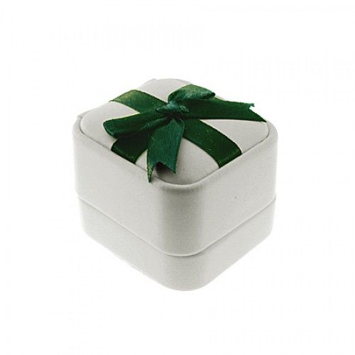 This Earring Box Is an Added Bonus to Your Special Gift. This Earring Box Is Made From White Leatherette with a Emerald Green Satin Bow On Top. the Standing Insert Inside Fits Most Earring Styles. a Two-Piece White Outer Carton Adds to the Surprise. She'Ll Be All Smiles When She Sees Your Present Wrapped Up in This Elegant Earring Box. BRAND : OTHER HEIGHT : 1.5 LENGTH : 2 METAL STAMP : 50.2 METAL UNIT OF MEASURE : GRAMS SIZE : ONE SIZE TOTAL METAL WEIGHT : NO METAL STAMP UNIT OF MEASURE (DIMENSIONS) : IN WIDTH : 2