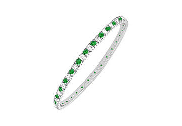 A fashionable circle eternity bangle surrounded with alternate sparkling brilliant-cut round diamonds emeralds are beautifully 4-prong-set. Made in 14K white gold has a total gem weight (TGW) of 2.00 carat. This gorgeous eternity bangle is made in USA and we can make this bangle exactly as per your wrist. Call us for free bangle sizer.