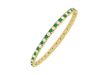 A fashionable circle eternity bangle surrounded with alternate sparkling brilliant-cut round diamonds emeralds are beautifully 4-prong-set. Made in 14K yellow gold has a total gem weight (TGW) of 5.00 carat. This gorgeous eternity bangle is made in USA and we can make this bangle exactly as per your wrist. Call us for free bangle sizer.
