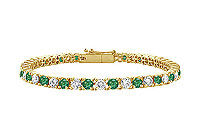 This never ending chain of alternating emeralds and brilliant diamonds symbolizes your timeless love. Crafted in 14K yellow gold & held in a prong setting this tennis bracelet has a total gem weight (TGW) of 4.00 ct. A great way to honor your union.