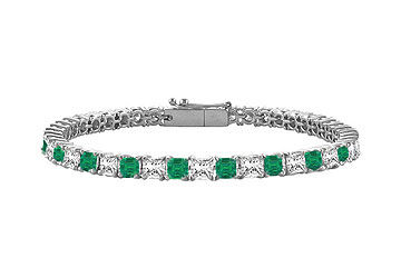 This never ending chain of alternating emeralds and princess-cut diamonds symbolizes your timeless love. Crafted in rich platinum held in a prong setting this tennis bracelet has a total gem weight (TGW) of 4.00 carats. A great way to honor your union.