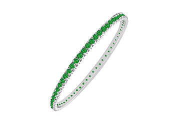A fashionable circle eternity bangle surrounded with sparkling brilliant-cut round emeralds are beautifully 4-prong-set. Made in 14K white gold has a total gem weight (TGW) of 3.00 carat. This gorgeous eternity bangle is made in USA and we can make this bangle exactly as per your wrist. Call us for free bangle sizer.