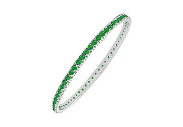 A fashionable circle eternity bangle surrounded with sparkling brilliant-cut round emeralds are beautifully 4-prong-set. Made in 14K white gold has a total gem weight (TGW) of 5.00 carat. This gorgeous eternity bangle is made in USA and we can make this bangle exactly as per your wrist. Call us for free bangle sizer.