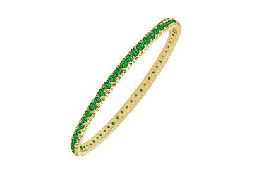A fashionable circle eternity bangle surrounded with sparkling brilliant-cut round emeralds are beautifully 4-prong-set. Made in 14K yellow gold has a total gem weight (TGW) of 3.00 carat. This gorgeous eternity bangle is made in USA and we can make this bangle exactly as per your wrist. Call us for free bangle sizer.