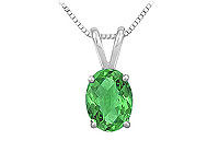 An oval natural emerald is securely held in a luscious 14K white gold prong setting. This gemstone pendant has a total weight (TGW) of 1.00ct and comes with a standard 16 14K white gold chain. Available in yellow gold also.