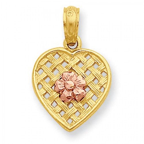 Flower Heart Charm in 14kt Rose & Yellow Gold - Mirror Polish - Fetching