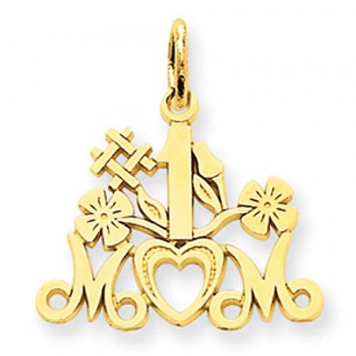 Flowered #1 Mom Charm in Yellow Gold - 14kt - Attractive - Women