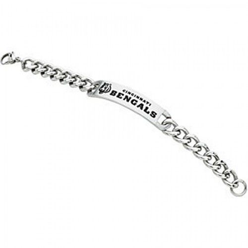 We Are Offering This Graceful Stainless Steel Link Bracelet. It Exhibits the Cincinnati Bengals' Logo. It Is Forged of Stainless Steel. This Bracelet Has a Curb Chain and Unveils a Lobster Claw Clasp to Keep It Affixed. This Is Adeptly Completed to a Mirror Polish. Snatch This Delightful Stainless Steel Link Bracelet Now and Be the Number One Fan. Processing Time: 1 days. Size: 8 BRAND : NFL Officially Licensed CHAIN TYPE : CURB CLASP TYPE : LOBSTER CLAW HEIGHT : 0.16 METAL STAMP : 52.3 METAL TYPE : STAINLESS STEEL METAL UNIT OF MEASURE : GRAMS SIZE : 8 TOTAL METAL WEIGHT : NO METAL STAMP UNIT OF MEASURE (DIMENSIONS) : IN WIDTH : 0.55