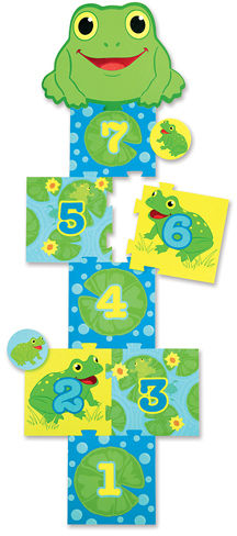 Colorful lily pads and frogs make every jump exciting in this hopscotch set! Eight jigsaw foam pieces snap together to make a simple, padded hopping course that's ideal for indoor or outdoor use. Lay it anywhere - the soft pieces won't harm floors! Item dimensions: 21.2 x 20.2 x 3.4" Sold Individually Please note: If there is a color/size/type option, the option closest to the image will be shipped (Or you may receive a random color/size/type). BRAND : MELISSA & DOUG PRODUCT_CODE : 000772062756 PRODUCT_CODE_TYPE : UPC