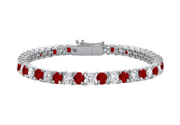 Get caught in the rapture of green peridots and white CZs. Radiant round peridots alternate with white CZs in a 10K white gold prong-setting. With gems consistent all around it symbolizes your eternal love. This tennis bracelet has a total gem weight (TGW) of 7.00 carats.