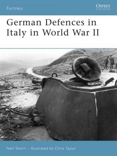 Book annotation not available for this title. Title: German Defences in Italy in World War II Author: Taylor, Chris/ Taylor, Chris (ILT) Publisher: Osprey Pub Co Publication Date: 2006/06/27 Number of Pages: 64 Binding Type: PAPERBACK Library of Congress: 2006494171 Additional Details \N BOOK TYPE : NF BRAND : Taylor, Chris/ Taylor, Chris (ILT) LANGUAGE : ENGLISH NUMBER OF PAGES : 64 PUBLISH DATE : 2006/06/27 PUBLISHER IMPRINT CODE : OSPRE PUBLISHER NAME : OSPREY PUB CO PUBLISHER STATUS CODE : OS RETURNS ACCEPTED? : YES