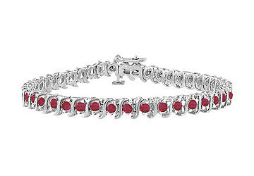 This tennis bracelet surrounded on your wrist with round radiant GF bangkok rubies alternate with delicate S links between each stone. Crafted in 925 sterling silver with high shine rhodium plated. It has a total gem weight (TGW) of 3.00 carat.