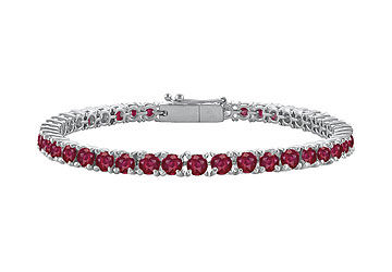 This delicate tennis bracelet surrounded on your wrist with round prong-set GF bangkok rubies. The entire bracelet is made of .925 sterling silver with high shine rhodium plated. It has a total gem weight (TGW) of 5.00 carats is secured with a safety clasp.
