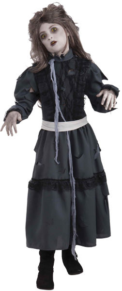 Old timey tattered long sleeve dress with haunted gauze attached with belt. Zombie wig sold separately (see SKU 1171560). Child Large fits girl's size 12-14." Sold Individually Please note: If there is a color/size/type option, the option closest to the image will be shipped (Or you may receive a random color/size/type). BRAND : WMU PRODUCT_CODE : 721773669477 PRODUCT_CODE_TYPE : UPC