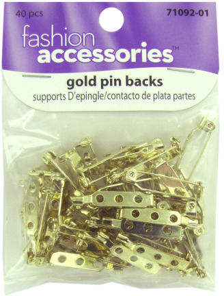 - Gold pin back with 3 hole opening attachment for braces or pins.