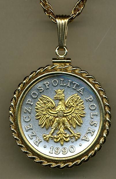 Each one of these real 50 Zlotych (S.B. Anthony size ) coins from Poland (in Uncirculated condition) is first layered in pure Bright Silver. Then the figures of each are highlighted and brought to life with rich pure 24K Gold (this gold work is done by hand). This breathtaking and exclusive work turns these coin into stunning and true works of art. Each coin is hermetically sealed against wear in clear, hard acrylic coating. Each coin comes with Gold filled Rope edge bezel, on a good quality 14K gold layered 24 in. rope chain and placed in a nice jewelry box Warranty 90 days BRAND : J&J Coin Jewelry