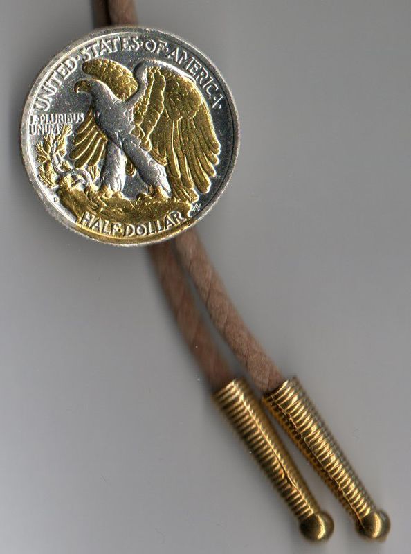 Each one of these old U.S Silver Walking Liberty real half dollars (minted 1916 - 1947) coins in extremely fine condition Has the figures of each highlighted and brought to life with rich pure 24K Gold & Pure Silver, letters HALF DOLLAR are in silver (this gold & Silver work is done by hand). This breathtaking and exclusive work turns these coin into stunning and true works of art. Each coin is hermetically sealed against wear in clear, hard acrylic coating. Each coin comes on a nice (soft) bolo cord in a regular bolo box. Warranty 90 days BRAND : J&J Coin Jewelry